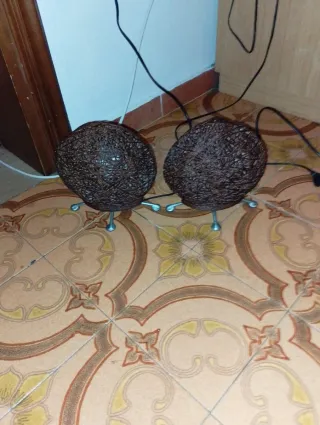 Coppia di lampade dal design unico che ricordano dei nidi. -Dal Design vintage - Realizzate in Rattan intrecciato - Colore beige e marrone.