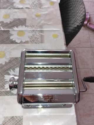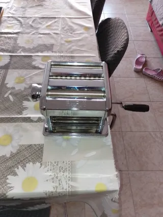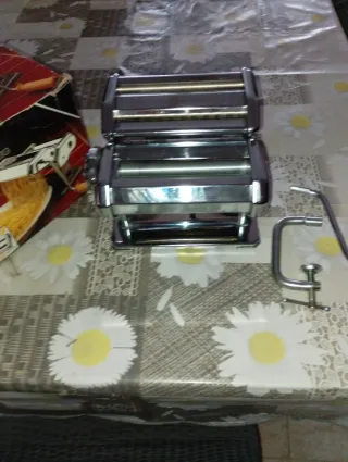 Macchina per preparare la pasta fresca fatta in casa. -Completa di maniglia e morsetto -Marca:Ampia tipo lusso mod.150 made in Italy - Struttura in metallo e plastica. - Colore argento e nero.