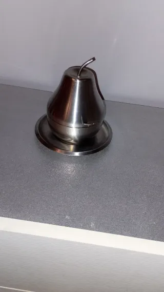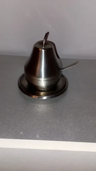 Zuccheriera Morinox Acciaio inox 18/10 -Prodotto Italiano anni 70 -Forma di pera completa di piattino e cucchiaino.