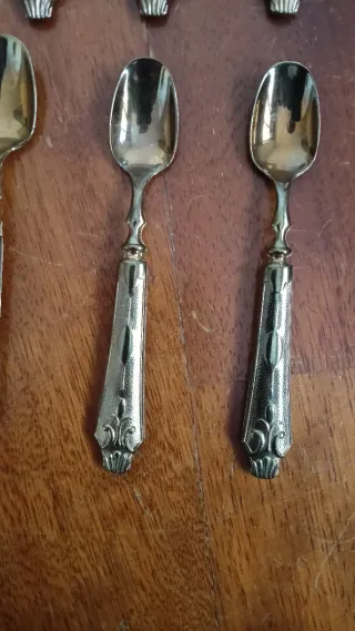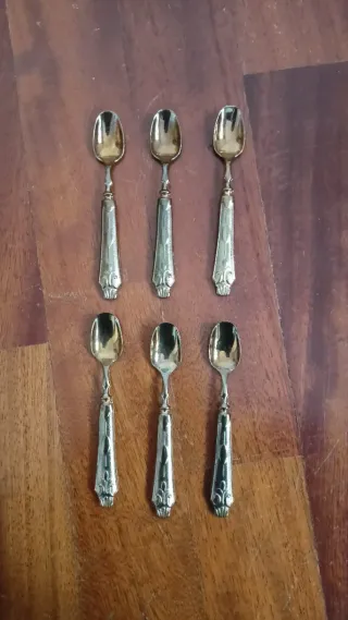 Elegante set di sei cucchiaini da tè con manico decorato. - Design raffinato. - Finitura lucida.