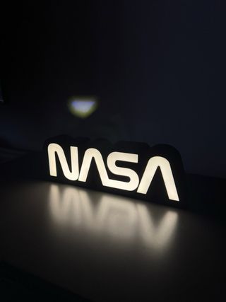 Lampada con logo NASA, realizzata con stampa 3D. Un'aggiunta unica per gli appassionati dello spazio. - Design moderno e distintivo. - Illuminazione LED integrata.