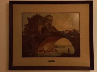 Riproduzione originale su tavola in legno del pittore Hubert Robert (1733 - 1808) denominata "Il vecchio ponte" Dipinto originale Natinal Gallery of Art di Sashinton Il quadro raffigura un paesaggio con vecchio ponte. - Cornice in legno scuro. - Passe-partout color beige. - Presente dichiarazione (come da foto) su retro - Primi novecento Dimensioni 71,5 x 60,5 - dipinto 51,5 x 40,5