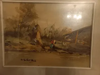 Quadro firmato S. De Notaris. - Cornice inclusa. - Colori predominanti beige e marrone.