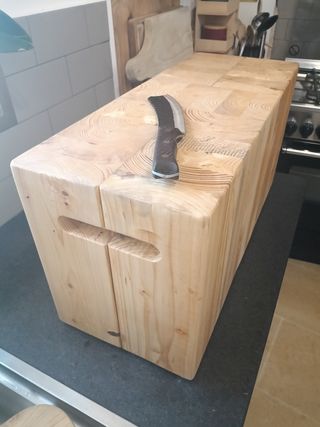 Robusto ceppo da macellaio, perfetto per la tua cucina. Misure 58.5 x 24 altezza 30 cm Gommini antiscivolo inferiori Trattamento con olio naturale per alimenti - Realizzato con legno assemblato di testa per una maggiore resistenza ai colpi - Design compatto e funzionale. SVENDO PER MONETIZZARE E FARE SPAZIO... MA VALE MOLTO DI PIÙ!!!