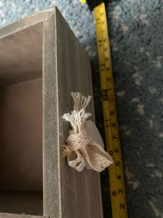 Un grazioso portachiavi da appendere, con un design shabby chic. - Struttura in legno dipinto con finitura leggermente usurata. - Cuore decorativo in legno appeso con spago. - Ganci interni per organizzare le chiavi.
