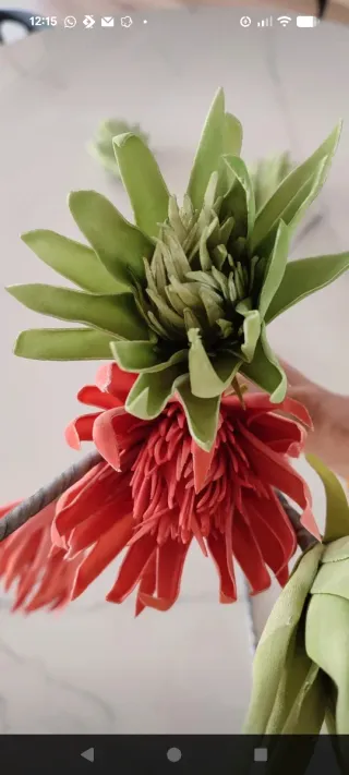 Bellissimi fiori decorativi, perfetti per aggiungere un tocco di colore e stile alla tua casa o per eventi speciali. - Fiori con petali verdi e corallo. - Design elegante e realistico.