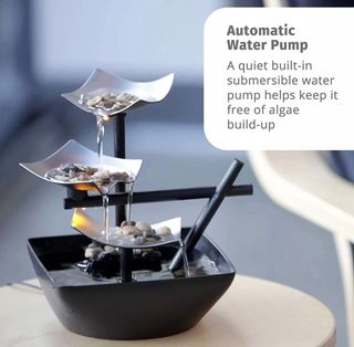 Articolo nuovo, aperto solo per verificarne il contenuto. IMPORTANTE: non essendo commercializzato in Italia presenta una presa Americana quindi dovrete considerare l'acquisto di un adattatore che è facile da reperire ad un costo non rilevante. Descrizione tradotta dal sito del produttore FONTANA DECORATIVA DA TAVOLO: Esponi la fontana rilassante Silver Springs di EnviraScape per creare un'atmosfera rilassante e zen in ogni stanza; Ha le dimensioni giuste per aggiungere un accento decorativo a qualsiasi tavolo, lavandino del bagno o scrivania da ufficio; Presenta una cascata a 3 livelli, pietre naturali e un grande bacino