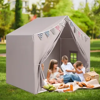 Tenda per bambini con tappetino a forma di casetta. Gioco per bambini, per interni ed esterni, adatta per 3, 4, 5 e 6 anni (colore grigio chiaro) Marca: Goutime Valore commerciale pari a €55, si cede a €30.