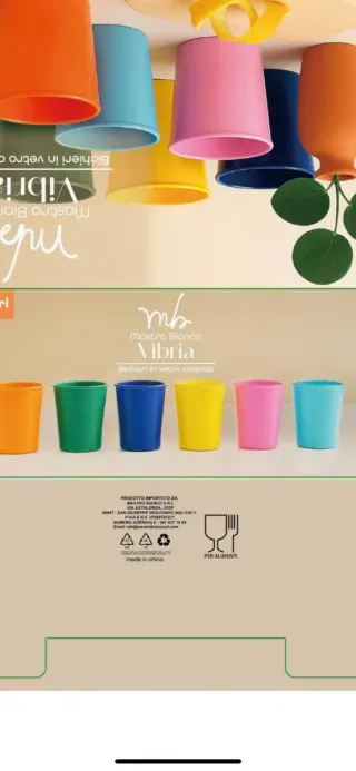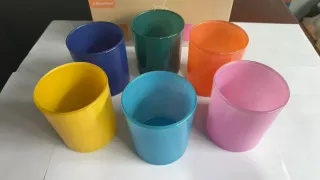 Set di sei bicchieri in vetro, ognuno di un colore diverso per aggiungere un tocco vivace alla tua tavola. - Sei bicchieri inclusi nel set. - Realizzati in vetro resistente. - Design moderno e colorato.