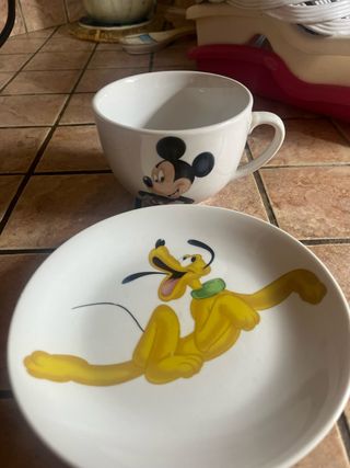 Set colazione con i personaggi Disney. - Tazza con Mickey Mouse. - Piatto con Pluto.