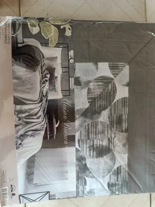 Set di lenzuola matrimoniali con un elegante design. - Fantasia geometrica e floreale. - Tonalità grigio e bianco. Completo lenzuola matrimoniale cotone maison bianco in cotone 80% poliestere 20% Le lenzuola sono chiuse e sigillate Sopra sotto con angoli e federe #instasale #instashop #vinted #lenzuolamatrimoniali #lettomatrimoniale #biancheriaperlacasa #cotone100per100 #tintaunita #verdepetrolio #spain