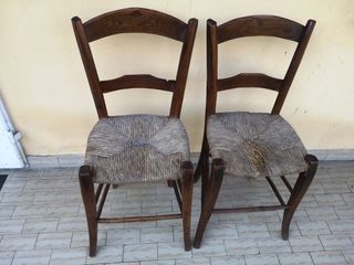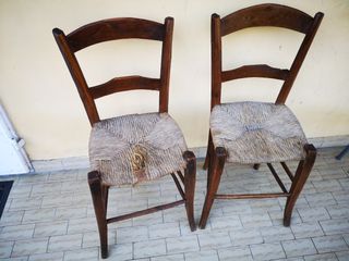 Coppia di sedie antiche Toscane fine 800, in noce, impagliate, il legno in buono stato di conservazione, una sedia ha l'impagliatura danneggiata (a richiesta possono essere vendute separatamente)
