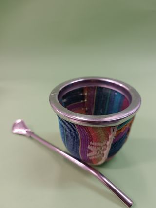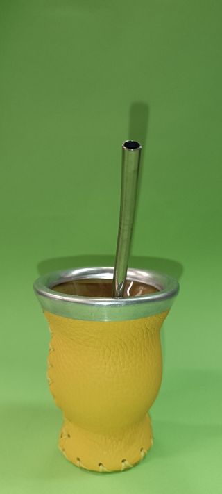 Tazza Mate +bombilla+spazzola per pulizia - è l'infusione preparata con le foglie verdi o tostate di un agrifoglio sempreverde, che cresce spontaneo in Argentina.. Contenente caffeina e per questo spesso paragonata a caffè e tè, dal gusto amarognolo, è un energizzante naturale. Bevanda tradizionale Argentina.