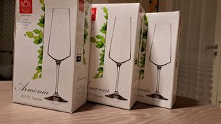 Ogni set di 2 calici fluite in vetro cristallino LUXION, 10€ a conf.