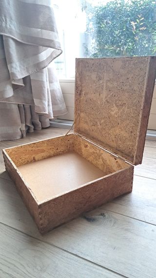 Scatola in legno OSB: - altezza esterna 11,5 cm - lunghezza 35x29 cm - profondità interna 8 cm Ideale per fare regali (vini, cesta nalizia)