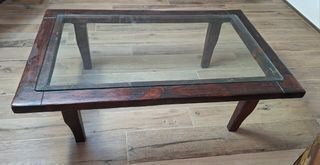 Tavolo in legno con piano in vetro