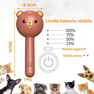 Spazzola per gatti e cani con aghi morbidi e vapore freddo Utile e simpatica spazzola per gatti e cagnolini ricaricabile USB-c cavo incluso batteria 300 mAh NUOVO IN CONFEZIONE ORIGINALE Aghi in acciaio curvi 135° punte morbide gomma spazzolare, rimuovere peli pulire coccolare il gatto o il cagnolino di casa Impermeabile IPX7 Design buffo, orsetto che si impugna saldamente Dimensioni 20x8cm 200 grammi di peso Serbatoio acqua 55ml sotto il naso dell'orsetto! Livello di batteria - 2 velocità di vapore - circa 60 minuti di vapore Levetta per togliere facilmente tutto il pelo catturato Una mini SPA per il micio o cagnolino!