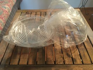 Elegante portatorta in acrilico trasparente, perfetto per presentare torte e dolci..Nuovo mai usato...diametro 27cm, nella sua confezione originale! - Base circolare con design a spirale. - Coperchio a cupola per proteggere il contenuto.