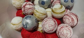 30 palline di Natale diametro circa 5 cm. colori rosso, oro e argento.