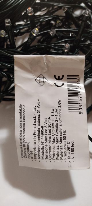 180 luci led con effetto luce variabile. Vedere foto 2 per specifiche esatte.