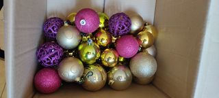N. 32 palline per albero di Natale color oro e rosa. Diametri vari (da 4 a 7 cm)