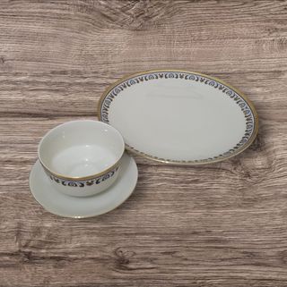 Servizio da Portata Bavaria in oro Zecchino e Cobalto in perfette condizioni, praticamente nuovo, regalo di matrimonio dei miei nonni mai utilizzato. Il set comprende • 1 piatto da portata Ø 28cm • 1 Salsiera