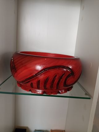 Bellissimo vaso in legno, di colore rosso, con decorazioni a onde. - Presenta un design elegante e particolare. - Perfetto come elemento decorativo o portaoggetti. - Le dimensioni sono adatte per diversi utilizzi.