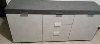 Madia con un design moderno e funzionale, perfetta per organizzare i tuoi spazi. - Due ante per un ampio spazio contenitivo. - Tre cassetti per una maggiore versatilità.