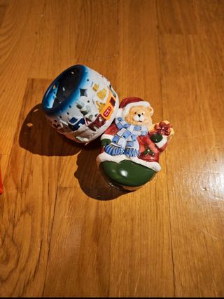 Vendo decorazioni natalizie, con relative scatole, usate ma in ottime condizioni. Uno è un porta candela, mentre l'orsetto è un porta oggetti, che può essere usato sia aperto che chiuso. Resto a disposizione per ulteriori informazioni e foto.