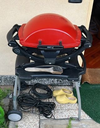 Vendo barbecue elettrico Weber Q1400 in buono stato e perfettamente funzionante. Soluzione ideale per balconi o terrazzi grazie alla potenza elevata e alla facilità d'uso. Il set include accessori originali per oltre 100€ di valore: Carrello Stand originale stabile e robusto. Luce per maniglia Weber per cucinare comodamente di sera. Custodia Premium impermeabile per protezione esterna. Doppi ripiani laterali richiudibili. Vendo per passaggio a nuovo modello. Disponibile per ritiro a mano in zona o spedizione ingombrante.