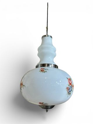 Elegante lampadario in vetro con decorazioni floreali. - Design unico in stile Murano. - Dettagli floreali multicolore su base bianca. - Struttura in metallo.