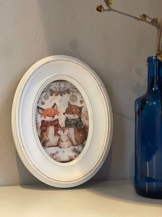 Elegante cornice ovale in stile shabby chic, perfetta per dare un tocco di personalità alla tua casa. Le sue dimensioni la rendono ideale per esporre le tue foto preferite. - Misure: 22x17 cm. Immagine 14x19