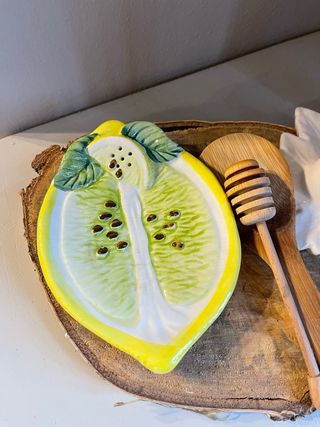 Un grazioso poggia mestoli a forma di fetta di limone, perfetto per aggiungere un tocco di colore alla tua cucina. Realizzato in ceramica con dettagli dipinti a mano. - Design a forma di limone. - Finitura lucida. Misure 17x12 made in Italy