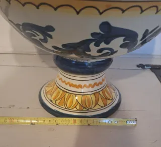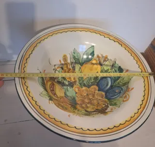Bellissimo centrotavola in ceramica dipinta con un ricco motivo di frutta. Un pezzo unico che aggiunge un tocco di colore e artigianalità alla tua tavola. - Decorazione floreale e fruttata. - Realizzato in ceramica artigianale, non ha marca ma proviene dalla Toscana .
