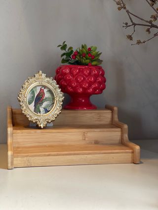 Etagere a scalini in legno, a lunghezza regolabile perfetta per esporre oggetti decorativi (esclusi quelli in foto) - Struttura a più livelli. - Finitura in legno naturale. Misure lunghezza da cm 21 fino a 38 cm Profondità cm 21 altezza 9 cm