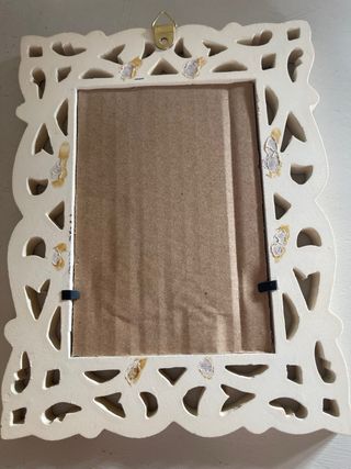 Deliziosa cornice in stile shabby chic, perfetta per aggiungere un tocco romantico alla tua casa. Ideale per esporre le tue foto preferite. - Design decorato con intagli. - Finitura anticata per un look vintage. 22x22 immagine 9x9