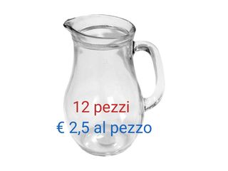 Vendo brocche / caraffe in vetro diverse forme e misure, nelle foto ci sono le quantità e i prezzi Disponibili anche brocche per limoncello a 2 euro a pezzo. Vendiamo anche bicchieri, piatti piani e fondi, sottopiatti, vassoi da portata ovali in acciaio di varie misure. Disponibile tanta altra attrezzatura e arredamento per ristorante pizzeria. Possibilità di vedere tutto di persona, contattate pure per un'eventuale spedizione.