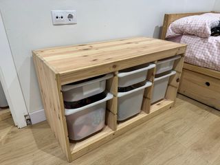 Dispongo di due mobilit uguali. Mobiletto in legno di IKEA, ideale per organizzare giocattoli e oggetti dei bambini. - Struttura in legno. - Include vari contenitori in plastica bianca.