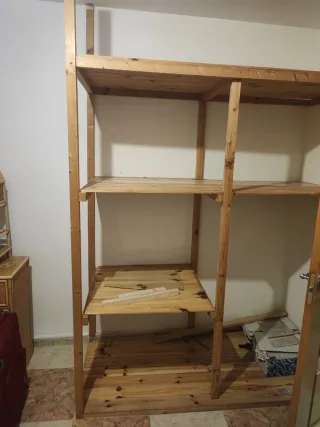 Vendo 3 ripiani in legno, di colore grigio. Sono in buone condizioni, anche se presentano segni di utilizzo. - Ideale per organizzare qualsiasi spazio: magazzino, spogliatoio, attività commerciale. Misure: -100 cm. larghezza -235 cm. Altezza -55 cm Profondità - Sono venduti insieme. Sono montati. L'acquirente dovrà smontarli. Prezzo unitario: 120€.