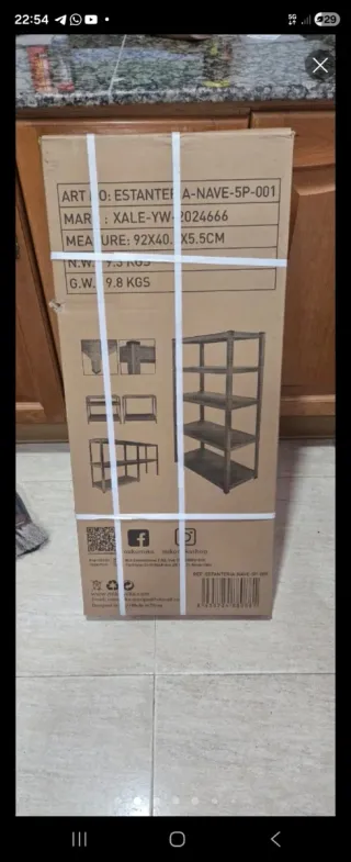Scaffali metallici con cinque ripiani in legno, l'altezza di altri ripiani può essere modificata a piacimento. Le sue dimensioni sono 180x90x40 cm. Disponibili diverse scaffalature, TUTTE NUOVE DA USARE E NELLA LORO SCATOLA SIGILLATA, quindi il prezzo non è negoziabile. Ideali per conservare qualsiasi oggetto o prodotto. Possibilità di spedizione. Supportano fino a 650 kg. Montaggio facile, senza attrezzi o viti. Utilizzabili in qualsiasi spazio di casa, in un ripostiglio, magazzino, locale o seminterrato, piano terra... È possibile dividerlo in due per avere due scaffali da 90 cm o montare una scrivania, ad esempio.