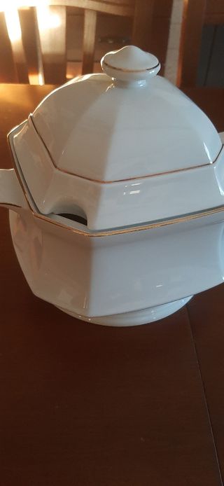 Non nuova. Tenuta in vetrina e mai usata. Bianca con filo d orato. Capienza oltre 2 litri. 25 cm circonferenza.