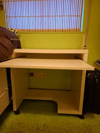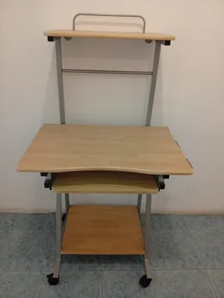 Scrivania funzionale in ottimo stato. Scrivania per computer. Struttura principale in legno. Ruote per una facile mobilità.
