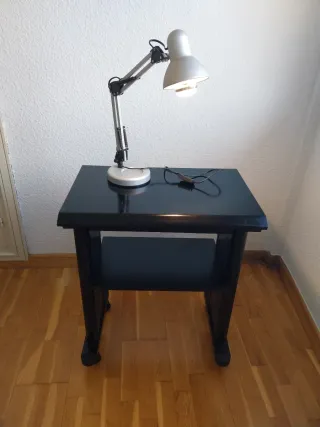 Tavolo ausiliario versatile con un design moderno e pratico. Struttura in acciaio resistente. Ruote per facile mobilità. Include lampada flessibile. Solo ritiro a domicilio.