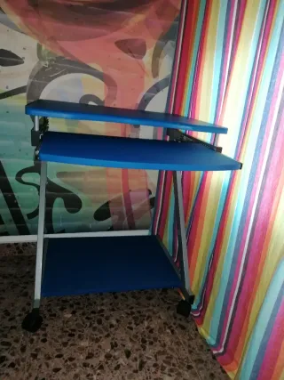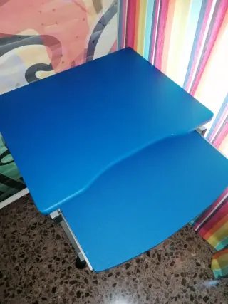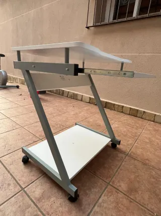 Tavolo da scrivania funzionale e pratico, ideale per il tuo spazio di lavoro o studio. Il suo design moderno si adatta a qualsiasi ambiente. - Struttura metallica. - Vassoio inferiore. - Ruote per una facile mobilità. Molto usato ma funziona ancora.