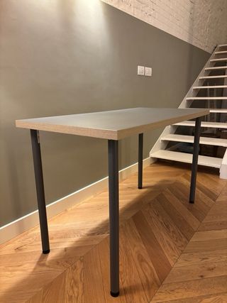 Vendo scrivania LAGKAPTEN / ADILS di IKEA, colore grigio/effetto legno grigio scuro con gambe ADILS nere robuste in acciaio. Dimensioni precise: 120 cm lunghezza x 60 cm larghezza x 73 cm altezza. Piano in tamburato leggero e resistente (cartone nido d’ape riciclato al 70%), preforato per montaggio facile, con bordi in plastica e finitura laccata. Usata pochissimo come scrivania/home office, in condizioni eccellenti: nessun graffio, stabile e pulita (foto dettagliate incluse). Ideale per studio, lavoro o angolo creativo. Prezzo originale €45, ritiro a mano a Torino (zona centrale), trattabile. Contattami per prova o domande!