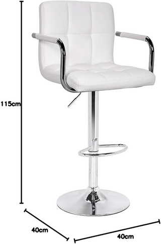 Il meglio per arredare la tua casa o la tua attività commerciale, che sia un ristorante o un bar, questi bellissimi sgabelli sono la soluzione ideale per arredare ogni spazio. Forniti di solida struttura in metallo con base cromata e con seduta e schienale ergonomico dotati di morbida imbottitura in schiuma espansa rivestiti interamente in ecopelle trapuntata inoltre i 2 braccioli anch'essi rivestiti in ecopelle donano un eccellente confort di seduta durante l'utilizzo. Lo sgabello è totalmente regolabile in altezza grazie al pratico meccanismo pneumatico per alzare e abbassare la seduta, inoltre è girevole a 360 gradi e il comodo p
