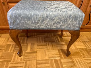 Comodo sgabello con un design patchwork. - Rivestimento in tessuto. - Gambe in legno.