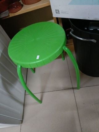 In vendita, lo sgabello è di colore verde ed è realizzato con gambe in plastica e ferro. È in buone condizioni. - Hanno un design circolare. - Leggero e facile da spostare. - Ideale per qualsiasi spazio.