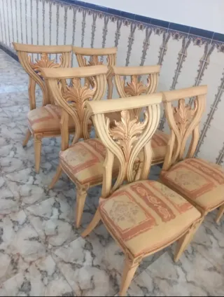 Sedie elegante in stile classico, ideale per dare un tocco vintage alla tua casa. - Struttura in legno intagliata con delicati dettagli. - Rivestimento in velluto beige, morbido e piacevole al tatto. - Gambe in legno tornito, che le conferiscono un tocco di distinzione. - Perfette per saloni. Le quattro sedie 350€