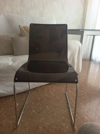 Vendo set di 4 sedie con un design moderno ed elegante. - Gambe in metallo argentato. - Sedile e schienale in plastica fumé.